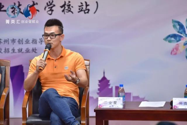 徐金星,2014年畢業(yè)于蘇州科技大學(xué),現(xiàn)任蘇州米袋星力量信息科技有限公司 CEO.他用自己四次創(chuàng)業(yè)經(jīng)歷和公司成功轉(zhuǎn)型的經(jīng)驗(yàn),告訴在座的大學(xué)生,當(dāng)你清楚地知道自己要去哪里的時(shí)候,全世界都會(huì)為你讓路。