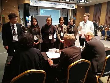 本屆全球模擬公司亞洲地區(qū)交易會共分為三部分進(jìn)行,第一部分為全球模擬公司挑戰(zhàn)賽(Global Enterprise Challenge),第二部分為全球模擬公司交易展示(International Trade Show),第三部分為模擬公司創(chuàng)意比賽(PE Startup Competition)。 挑戰(zhàn)賽環(huán)節(jié)會將所有的學(xué)生進(jìn)行隨機(jī)分組,相同國家的學(xué)生會被分到不同的組別,針對大賽提出的創(chuàng)業(yè)項(xiàng)目進(jìn)行市場調(diào)查、數(shù)據(jù)分析、營銷策略制定等工作,學(xué)生在突破語言障礙的同時(shí),要在2小時(shí)內(nèi)完成大賽的任務(wù)。最后,小組同學(xué)要進(jìn)行成果展示,分工講述自己對項(xiàng)目的理解和分析,還要解答評委老師提出的問題。 在交易展示環(huán)節(jié),所有的參展模擬公司要利用LED屏、易拉寶、宣傳單、實(shí)物來向參觀者展示自己的項(xiàng)目和產(chǎn)品,吸引他們購買自己的產(chǎn)品和服務(wù)。最終,大賽組委會在模擬公司中評選出最受參觀者喜歡的創(chuàng)業(yè)項(xiàng)目和當(dāng)日交易量最好的模擬公司。 模擬公司創(chuàng)意比賽環(huán)節(jié)會邀請有創(chuàng)業(yè)想法的學(xué)生通過PPT向評委講解自己的idea.學(xué)生在這個(gè)環(huán)節(jié)充分利用在模擬公司學(xué)習(xí)中學(xué)到的SWOT分析法,來講述未來的市場愿景,吸引評委對自己的項(xiàng)目進(jìn)行投資。