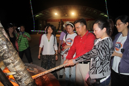 篝火晚會現(xiàn)場朱總(紅衣)舉行點火儀式 正保育才教育攝